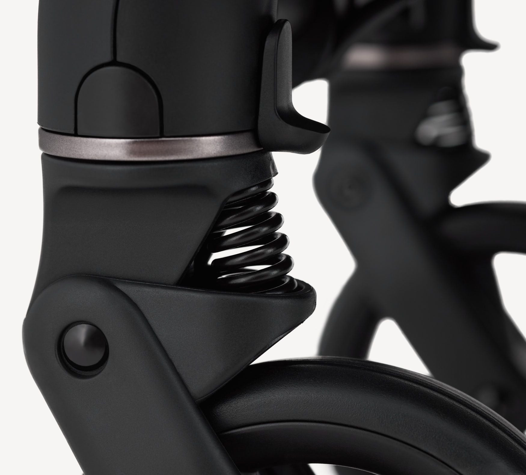 Wir haben den Klappmechanismus um eine innovative Federungsfunktion erweitert, die den Kinderwagen auch in der Version mit Buggy „weich“ macht. IQ ist der einzige Buggy, der eine so reibungslose Fahrt garantiert.