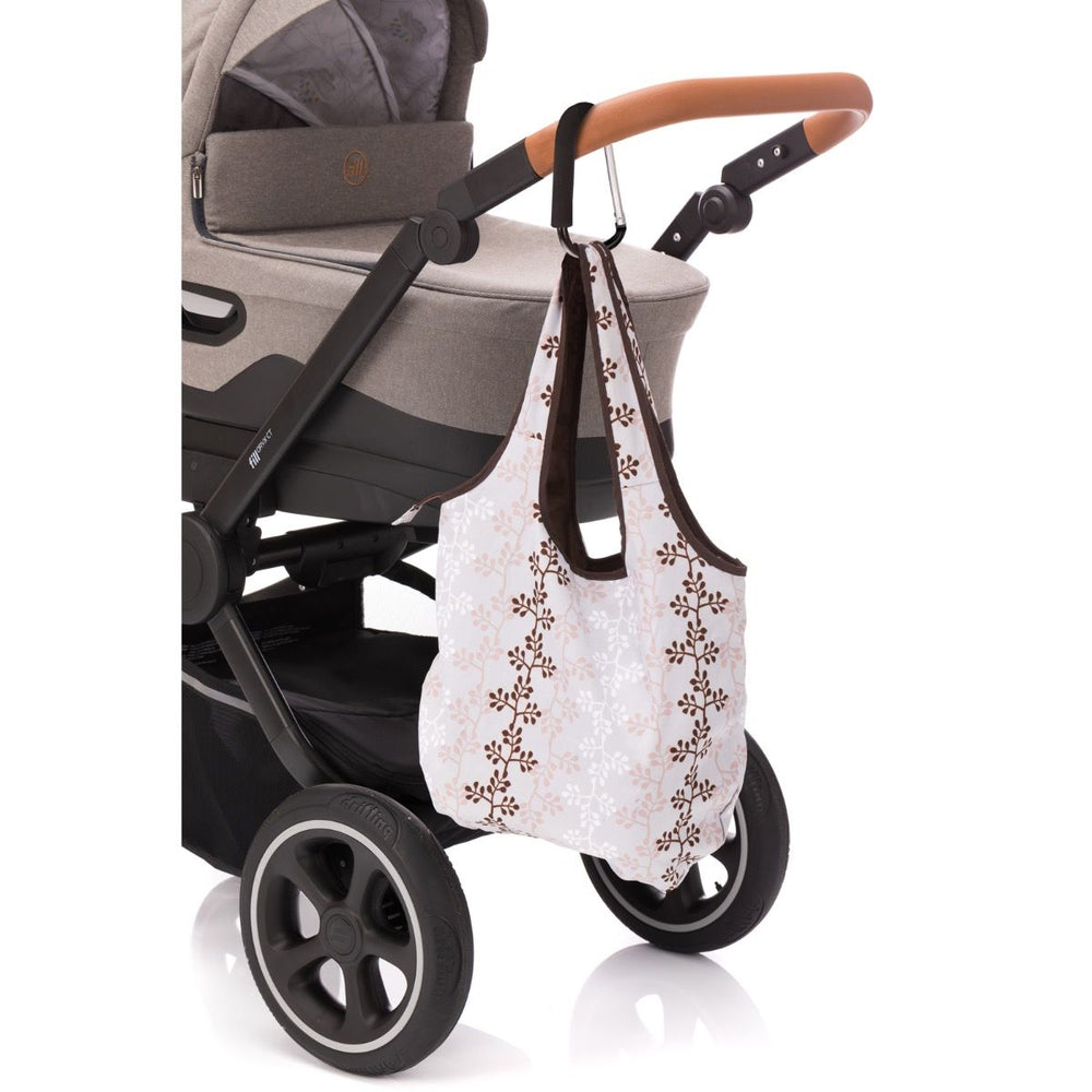 - einfach den Taschenhaken am Kinderwagen, Buggy, Jogger oder am Einkaufswagengriff einrasten und schon kann es losgehen