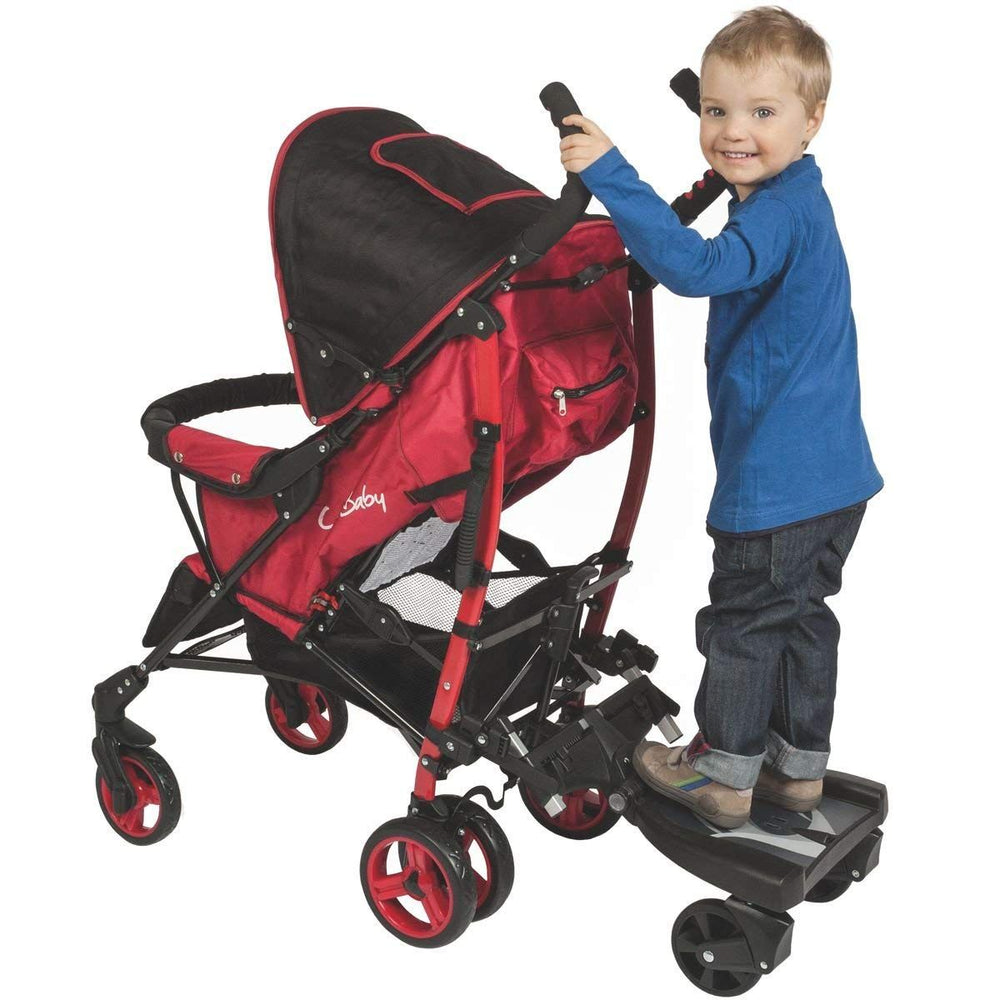 Sobald der Nachwuchs da ist, freuen sich größere Brüderchen oder Schwesterchen riesig. Da ist es nur allzu nachvollziehbar, dass sie beim Spazierengehen dabei sein und allen den Familienzuwachs stolz präsentieren möchten. Sollte das ältere Geschwisterchen während des Ausflugs etwas müde werden und hat das Bedürfnis sich auszuruhen, ist das Filliboard 180° von fillikid zum Daraufstellen oder zum Sitzen (optional) eine optimale Lösung. Das Board eignet sich für Kinder zwischen zwei und fünf Jahren und ist mit maximal 20 kg belastbar. Durch die universelle, 180° drehbare Aufnahme passt es auf fast alle Kinderwagen und Buggys.