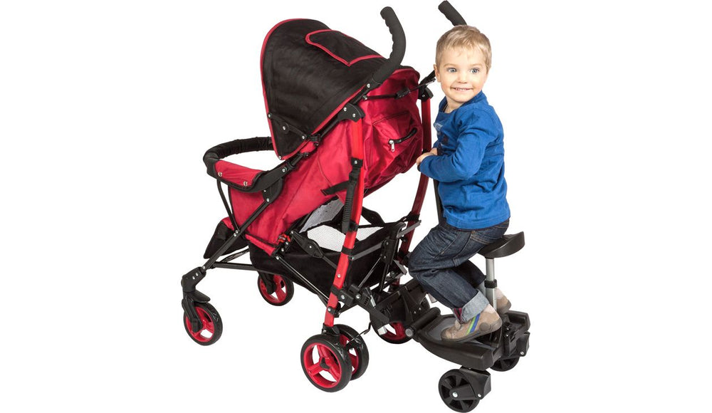 Sobald der Nachwuchs da ist, freuen sich größere Brüderchen oder Schwesterchen riesig. Da ist es nur allzu nachvollziehbar, dass sie beim Spazierengehen dabei sein und allen den Familienzuwachs stolz präsentieren möchten. Sollte das ältere Geschwisterchen während des Ausflugs etwas müde werden und hat das Bedürfnis sich auszuruhen, ist das Filliboard 180° von fillikid zum Daraufstellen oder zum Sitzen eine optimale Lösung. Das Board eignet sich für Kinder zwischen zwei und fünf Jahren und ist mit maximal 20 kg belastbar. Durch die universelle, 180° drehbare Aufnahme passt es auf fast alle Kinderwagen und Buggys.
