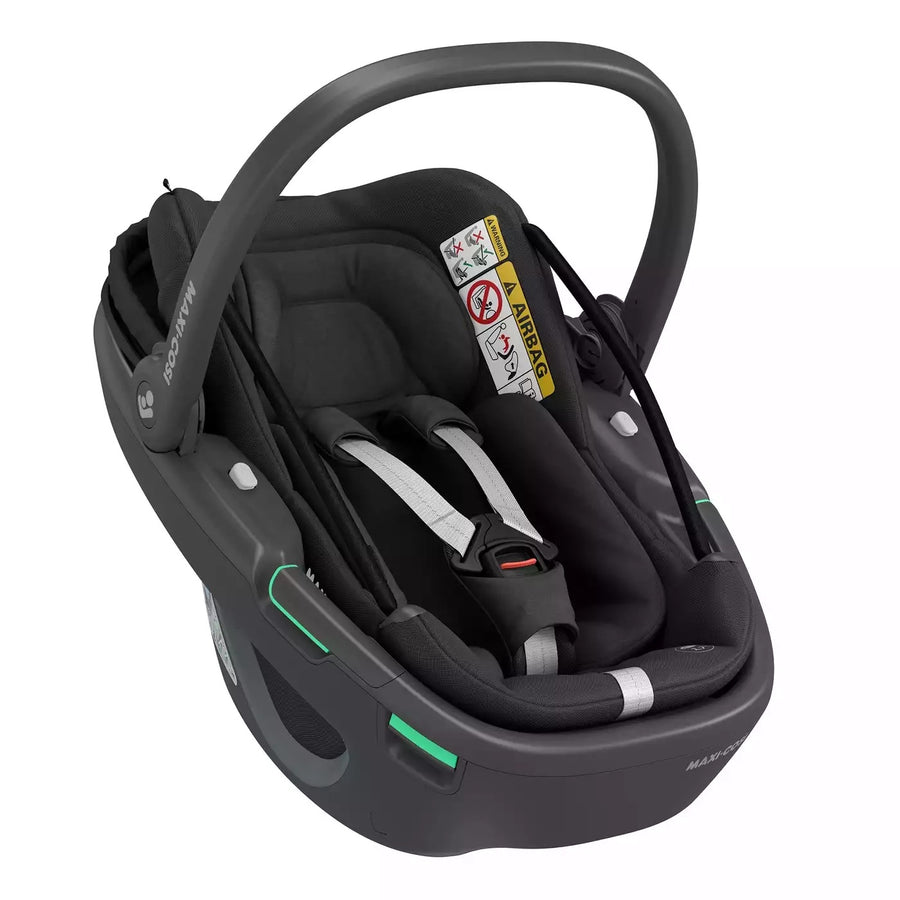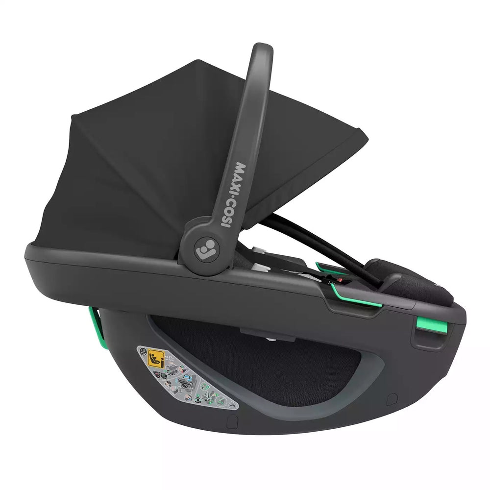 Die Max Cosi Coral 360 Babyschale mit schwarzer Unterschale kombiniert den höchsten i-Size Sicherheitsstandard mit einem modernen und einfach herausnehmbaren Soft Carrier.
