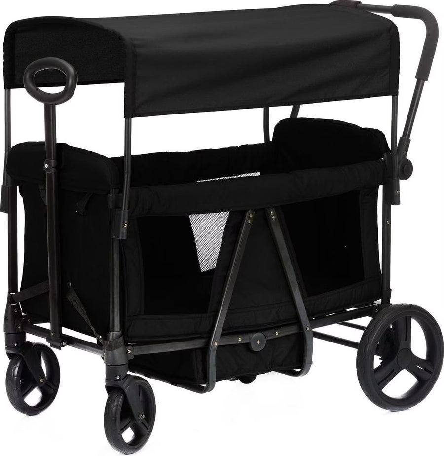 Rush through the city side by side with your sister or brother - with the Fillikid twin stroller duo, twins or siblings can travel together. Equipped with two canopies and quickly foldable, this stroller is a practical companion. The backrests can be adjusted using a belt system and can therefore be individually adapted to each child. Thanks to the stable double wheels, the Duo twin stroller rolls extremely quietly and maneuverably. The 5-point belt system with padding ensures extra safety. There is also a practical basket under the seat, which offers plenty of storage space. The fold-out roof provides sun and rain protection. The stroller can hold up to 30kg.